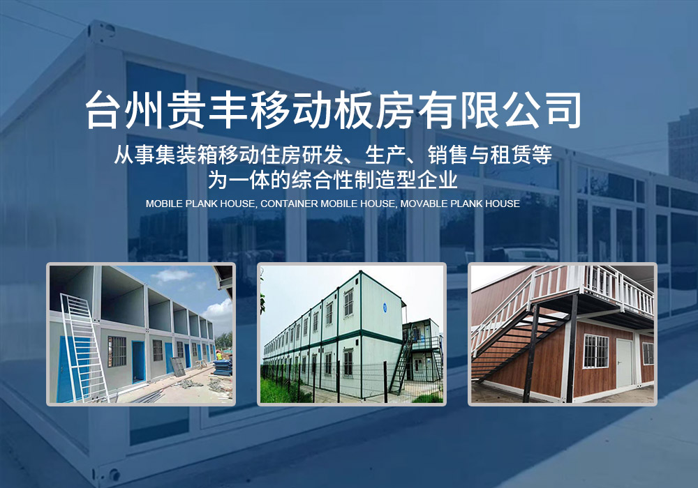 臺州貴豐移動板房有限公司從事集裝箱移動住房研發、生產、銷售與租賃等為一體的綜合性制造型企業。貴豐移動房為滿足工程項目簡單住宿、辦公而研發的組合式集裝箱移動房,該產品可單獨使用、可疊加兩層、也可實現橫向大空間連通,作為大空間辦公室、會議室、食堂等功能使用。 產品被廣泛適用于工地工廠住房,拆遷過渡房,應急辦公室,值班崗亭,門面房,樓房建筑類、高速公路類、高速鐵路類、軍工工程類、救災安置房類、鋼結構組合房類、特種鋼結構組合房等戶外作業領域。另可根據客